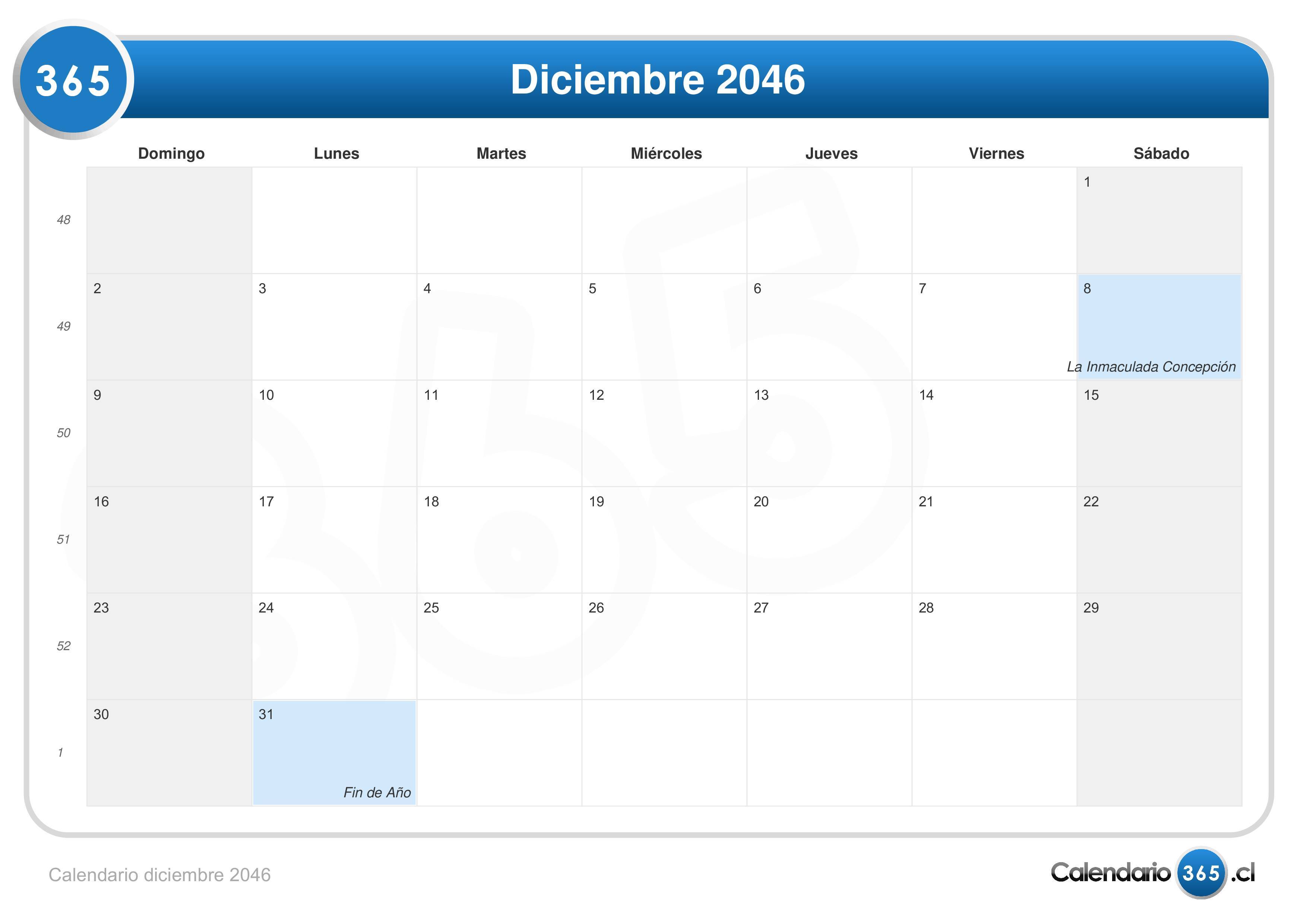 Calendario diciembre 2046