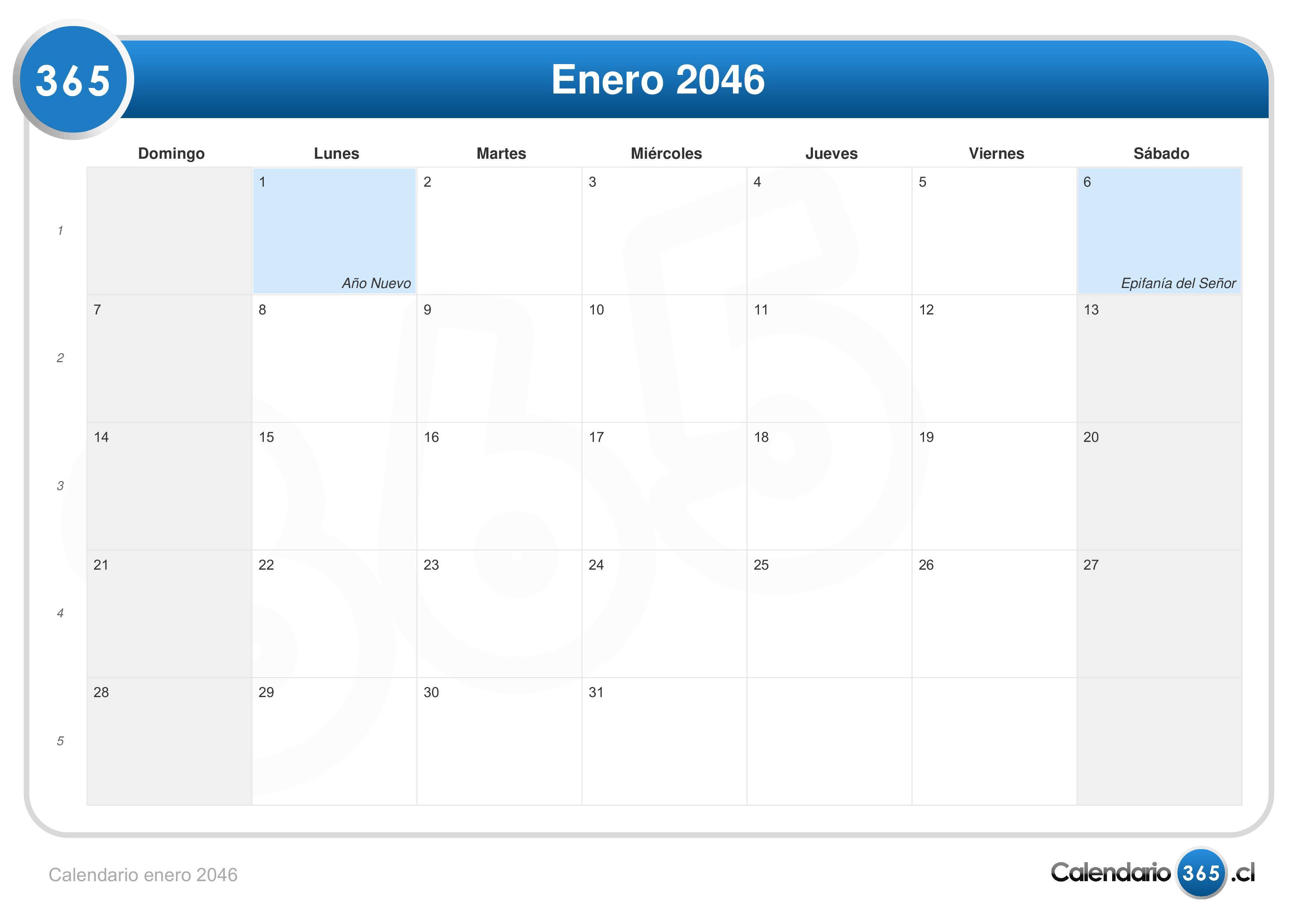 Calendario enero 2046