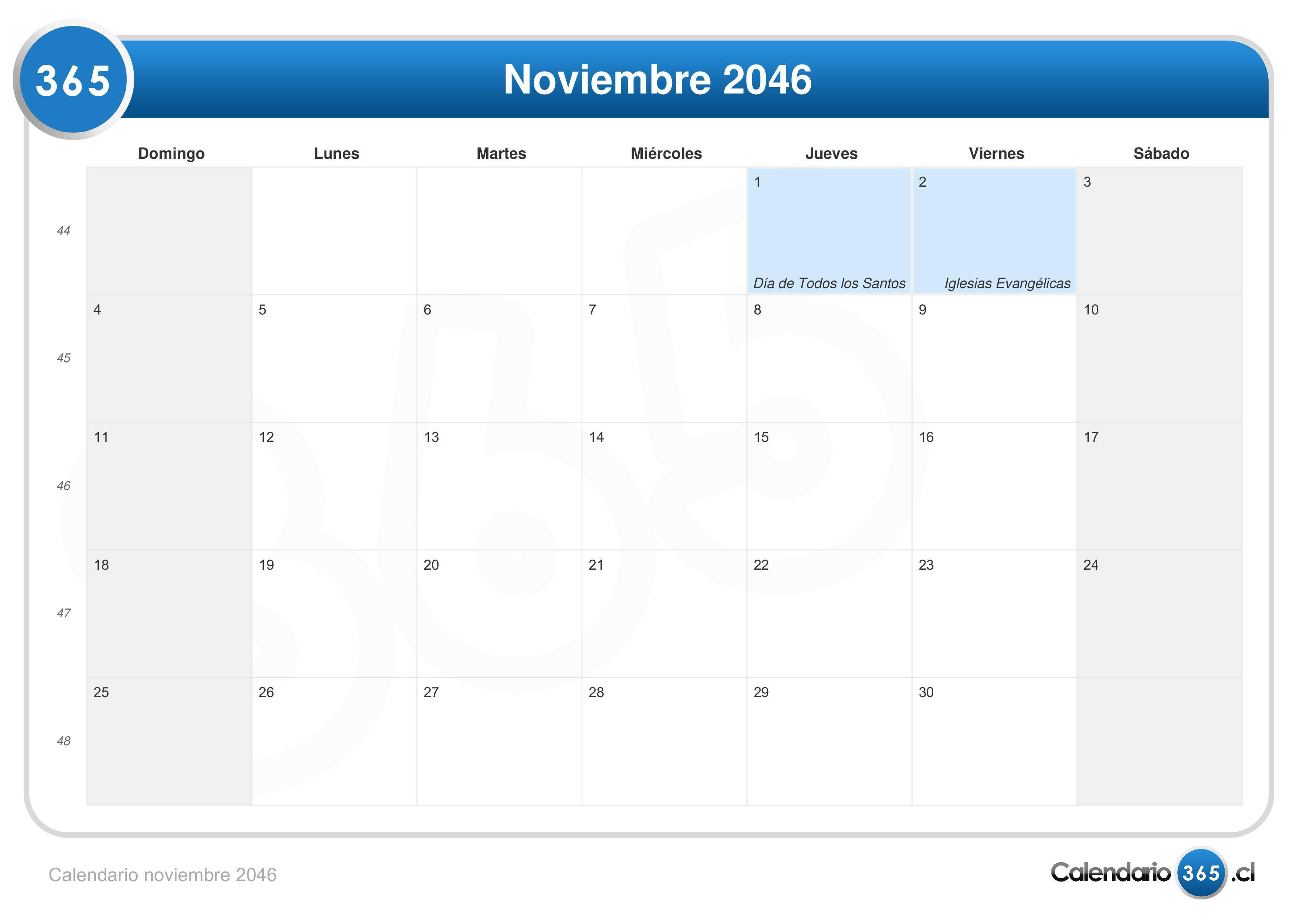 Este noviembre 2046 calendario siempre es muy útil. Sobre todo cuando deseas consultar las fechas de tus vacaciones.